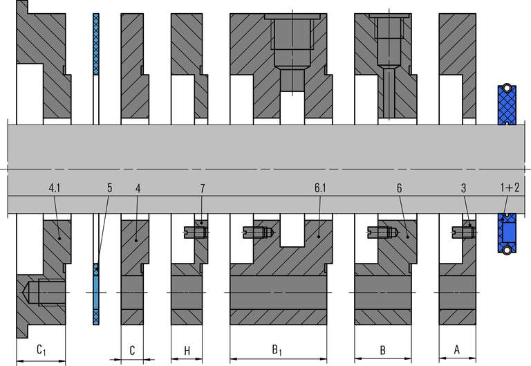 • Multi-part seal rings, radially cut on process side, overlapped mortised with gas tight joints on atmosphere side (adjusting)